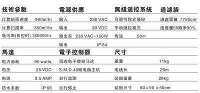 專利轉(zhuǎn)環(huán),使自動機械清潔器的動力電纜不會糾纏結(jié);水線清潔程序,使機器沿泳池邊絕緣體進行清潔:獨有的Laps Pool清潔程序:頻率控制池壁爬高:超清潔程序用于更徹底的清潔:過濾袋阻塞指示燈。
