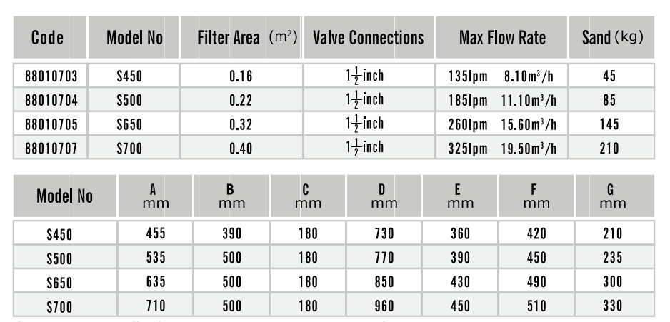 特大的沙/水漏或維修快速防凍。使用方便的底排水及多功能缸頭,簡單的把手操作已可以選擇任何一個閥門/過濾功能,防紫外線的表面,使過濾器可在陽光直射下操作。