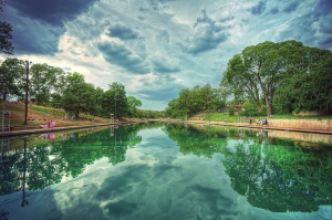 巴頓泉池位于德克薩斯州的奧斯汀市,占地超過3英畝,全年池水溫度保持在68度,地下涌出的泉水曾經被通卡瓦的美國土著部落用于凈化儀式。這里約18英尺深的泳池從每年的11月到3月的晚上9點以后免費開放;從3月到10月是收費的,成人3美元,兒童1美元。