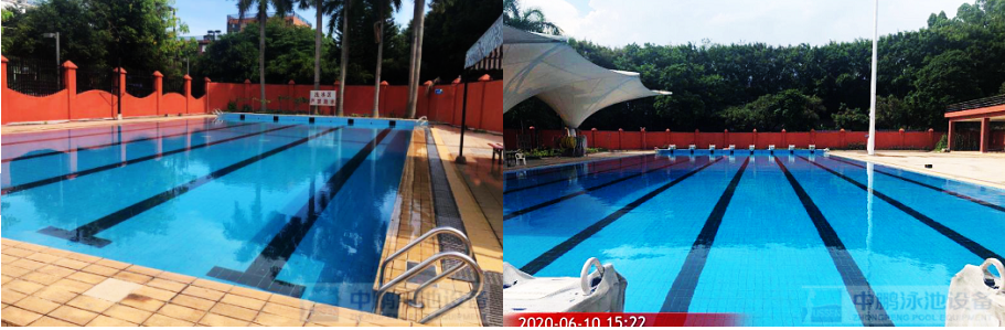 近日由我司廣州中鵬康體設備有限公司承建的廣州美術學院大學城校區游泳池水循環系統配套設備及安裝服務工程。室外用泳池工程配套設備,泳池采用混流式運行,水溫常溫:標準池面積約1250平方,水深1.6m~2.0m;平均水深1.8m,容積約2230立方;訓練池面積約312平方;水深1.1m~1.4m,平均水深1.25m;容積約390立方;循環周期5-7h;過濾流量:360立方/h;用電量:55kw。泳池設備包括有,循環過濾系統、水質凈化消毒系統、電控系統等。循環過濾器、消毒器、水下照明燈、水質監控系統、采用我司菲臣FUSSEN品牌的高品質循環水泵、過濾砂缸和泳池水下燈,投藥裝置是用意大利著名品牌Seke,全程監控水質情況,電氣系統包括泳池機房控制柜上樁及泳池水下燈具全部電線動力控制安裝,一流的技術有效的速率,項目已經順利完工正投入使用得到校方非常滿意認可。
