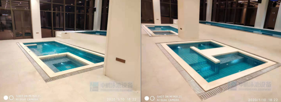 最近由我司廣州中鵬康體設備有限公司承建的廣州恒大足球訓練基地項目水療中心設備安裝工程。中鵬專業做泳池桑拿設備, 別墅泳池設計、 一體化恒溫泳池設備、 泳池建造、 泳池設備廠家、無邊際泳池、 溫泉設備工程、 水景噴泉、下面簡單介紹該項目泳池改建造后的新面貌。